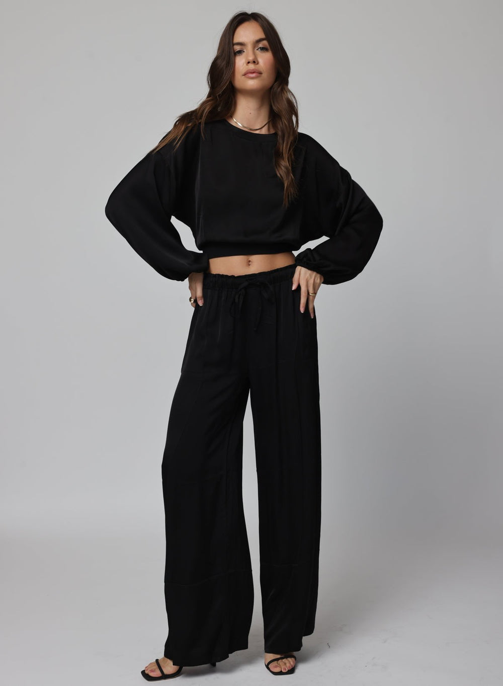Soft, skimming viscose satin tops that dress up or down. A modern alternative to silk—minimal, flattering, always polished.
