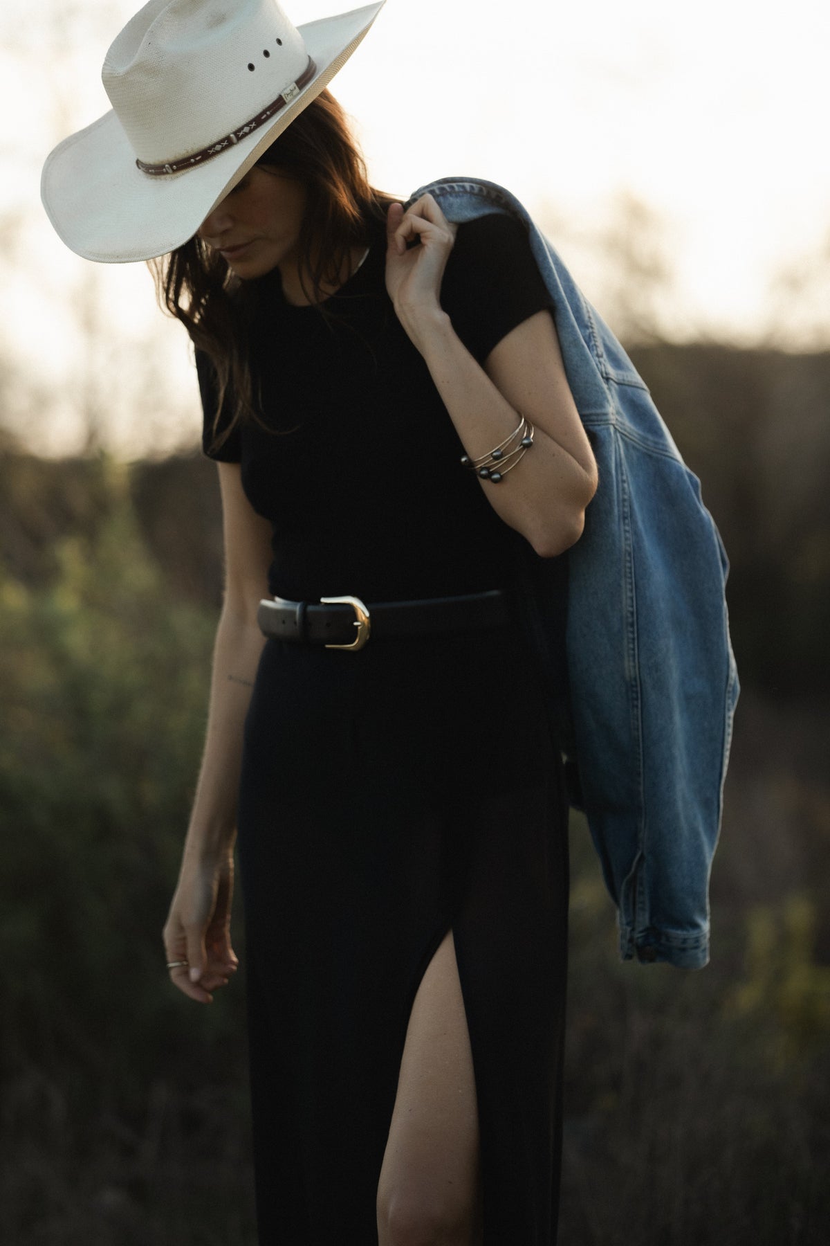With a high waist, front slit, and fluid drape, the What If Maxi Skirt flatters from every angle. Style it with a slim ribbed tank or an oversized knit thrown over the shoulders. Whether you're headed out for dinner or just dressing for the day, it brings that quietly polished energy we always come back to.